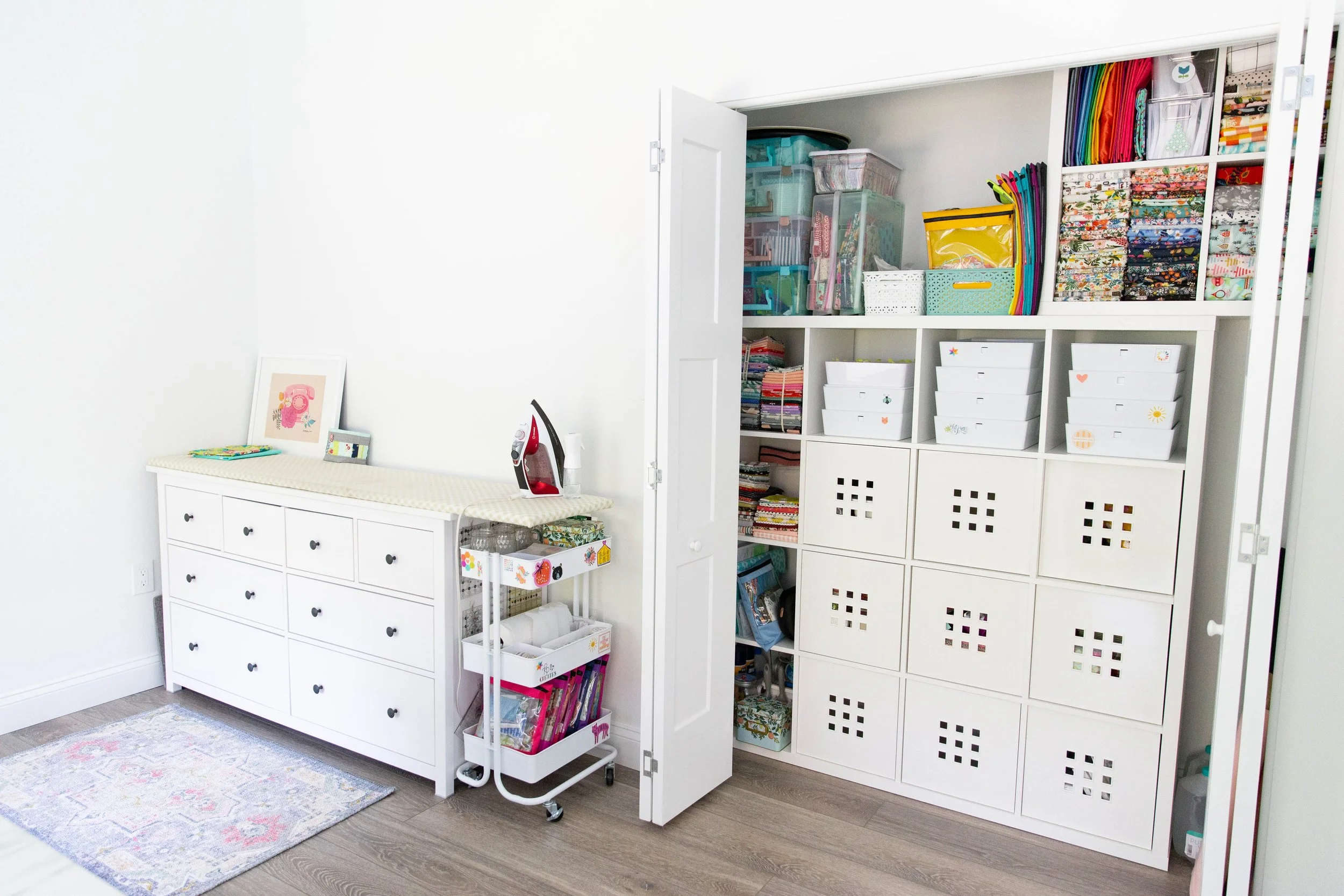 Can you believe the wild ride this journey has been? Picture this: starting off with a desk in an office that I shared with Jamie, to stitching away on the dining room table to avoid interrupting his work calls – and now, stepping into this oasis! The studio is bathed in natural light streaming through four generous windows, it's a photographer's dream!! I have multiple work surfaces that I can spread out on. And guess what?! There's even a door!!